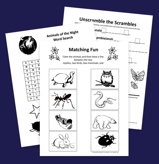 Games and activities about wildlife and light pollution.